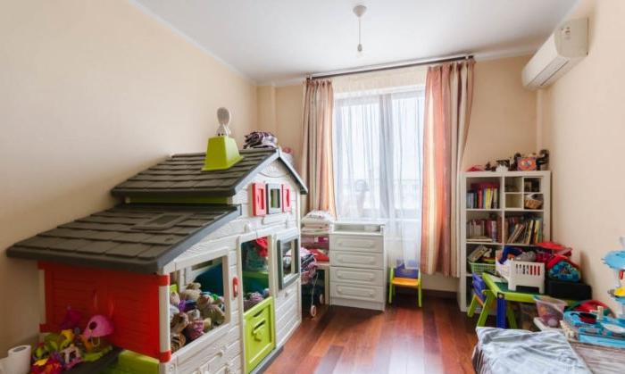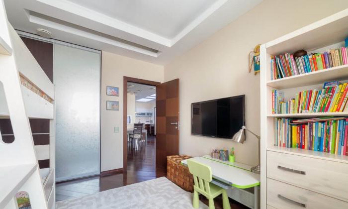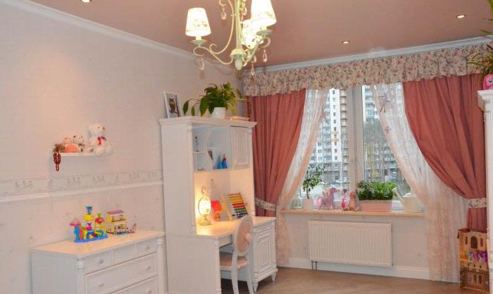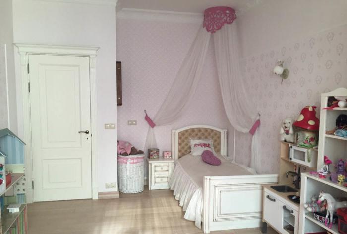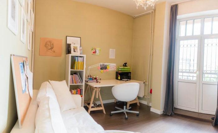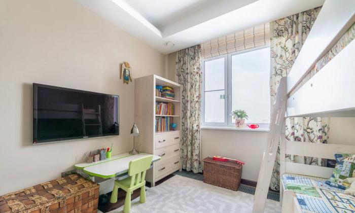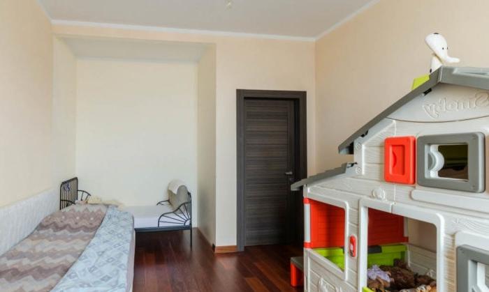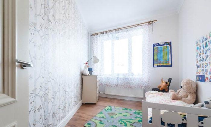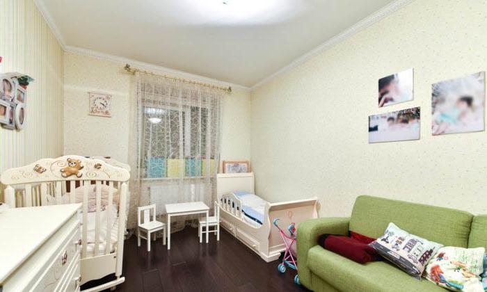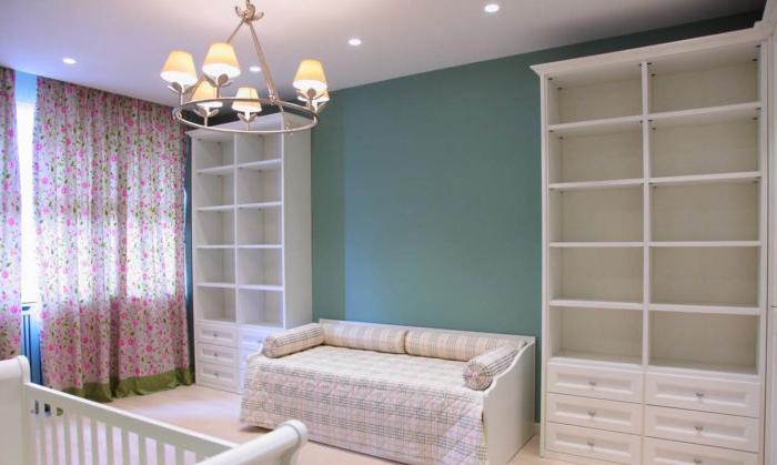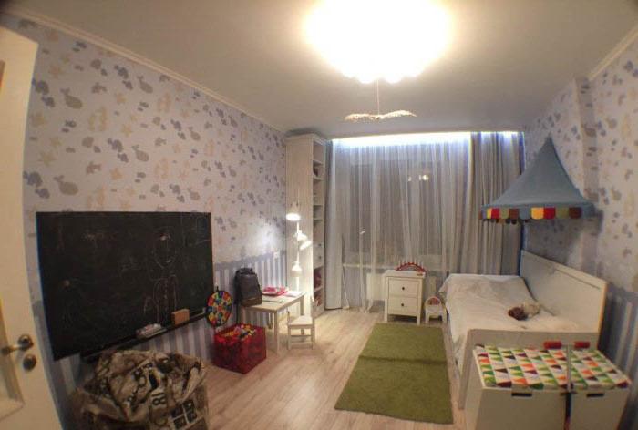 - L'intera revisione della stanza dei bambini: il soffitto, il pavimento, le pareti, tutti i componenti elettrici e l'illuminazione sono realizzati in uno stile adulto neutro: questo è lo sfondo.