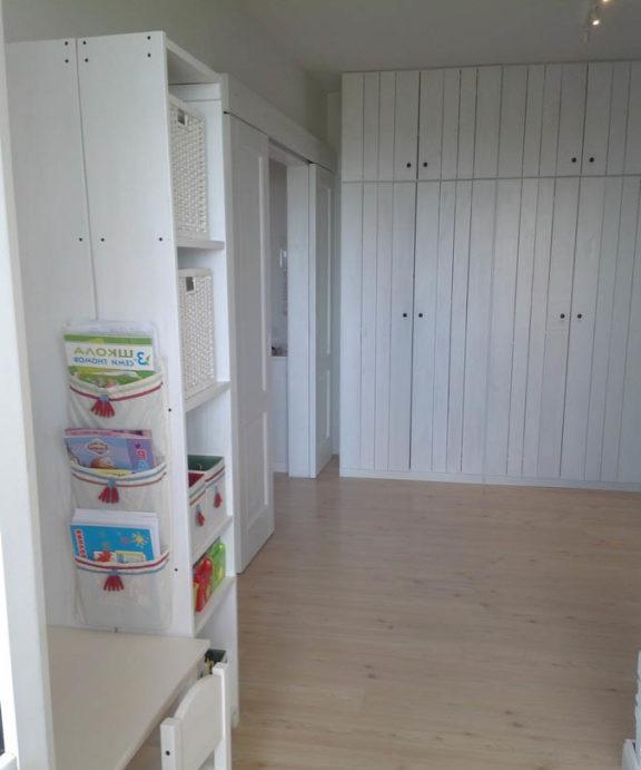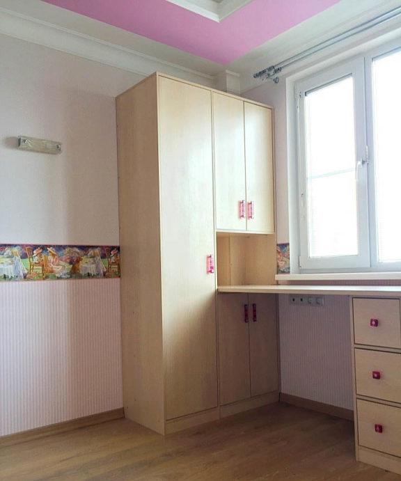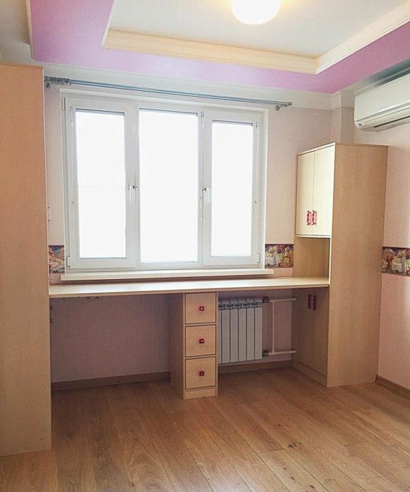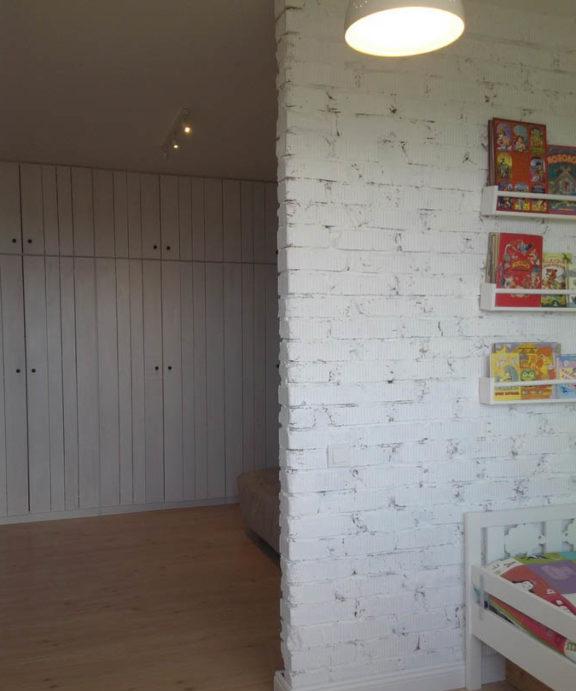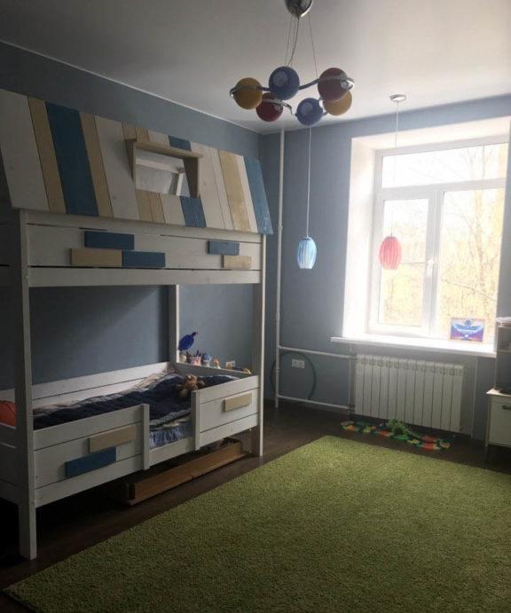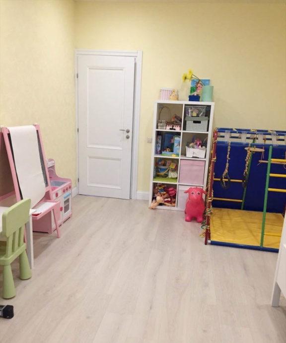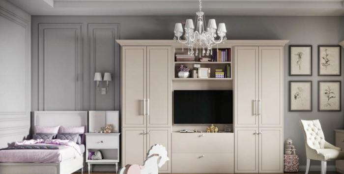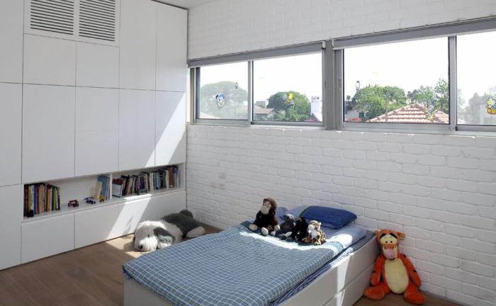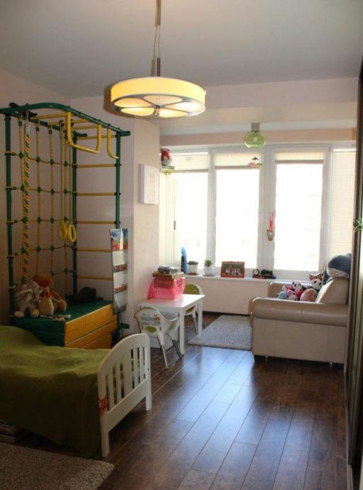 - L'intera revisione della stanza dei bambini: il soffitto, il pavimento, le pareti, tutti i componenti elettrici e l'illuminazione sono realizzati in uno stile adulto neutro: questo è lo sfondo.