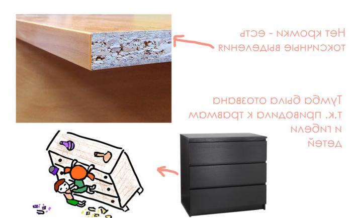 Ma se i mobili gli cadono addosso, è pericoloso. Pertanto, tutto deve essere risolto saldamente. In modo che anche quando si pendono su oggetti, non si ribaltano. C'è stato un caso scandaloso con il richiamo di 29 milioni di pollici e tribunali. Il bambino si aggrappò al limite, il gabinetto cadde, perì - ci furono solo 6 morti.