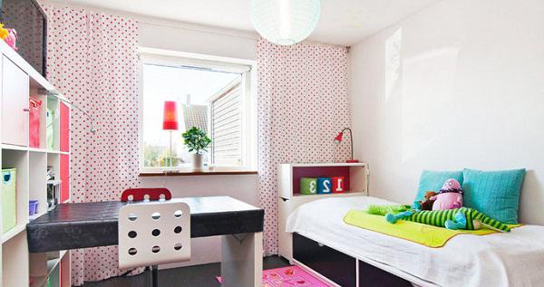 - L'arredamento: biancheria da letto, cuscini, tende, adesivi, poster e disegni, giocattoli, tappeti rende vivido il design della stanza dei bambini.
