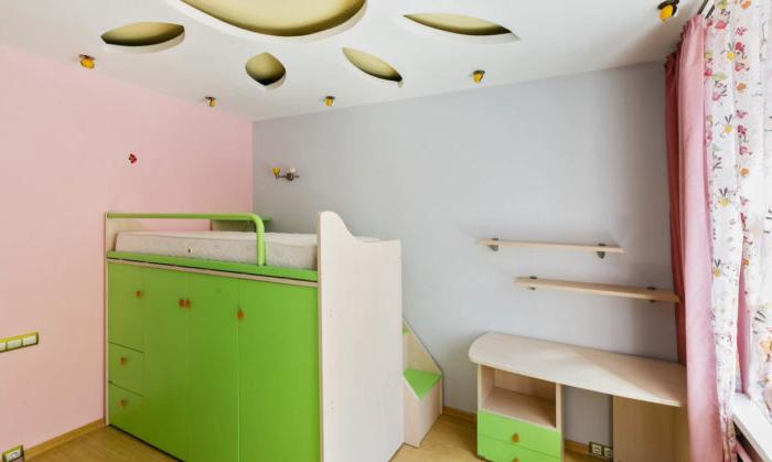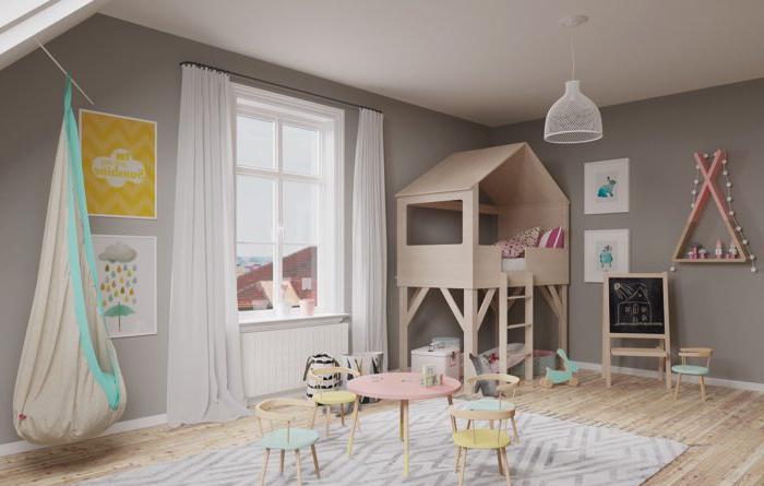 Di solito, il compito è di allargare il più possibile l'area dei giochi e del luogo di lavoro. Per fare ciò, tra loro dovrebbe esserci una zona per dormire e riposare. È più probabile che il bambino sia distratto dai giochi che dal sonno. Pertanto, trovare un letto vicino a una scrivania è relativamente sicuro.