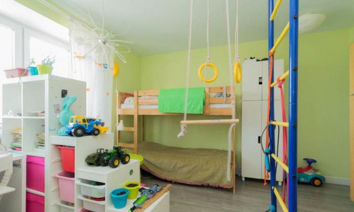 Esistono 2 tipi di suddivisione in zone di una camera per bambini : orizzontale e verticale. Il 2 ° è più interessante ed estremo, ma prima le prime cose.