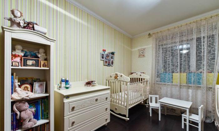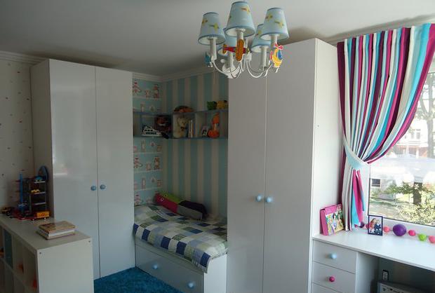 La maggior parte delle riparazioni dei bambini firmate con mobili bianchi. Molti designer lo fanno inconsciamente: avvertono semplicemente la combinazione. Ciò è dimostrato dalla foto: basta guardare il colore dei mobili.