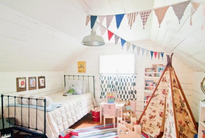 I bambini a volte vogliono avere solo un posto accogliente. Da qui l'amore per tende, castelli e fortezze coperte sotto i tavoli. La capacità di arrampicarsi e stabilirsi un po 'più in alto nella stessa categoria. Questa tecnica di design è ora di moda all'estero, il che significa che ci raggiungerà presto.