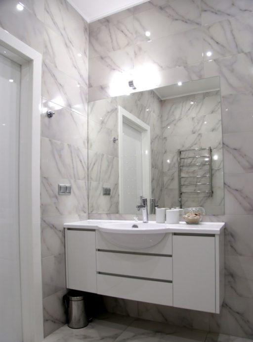 Una combinazione di diversi toni di luminosità in diverse proporzioni può realizzare un bagno di qualsiasi stile moderno: